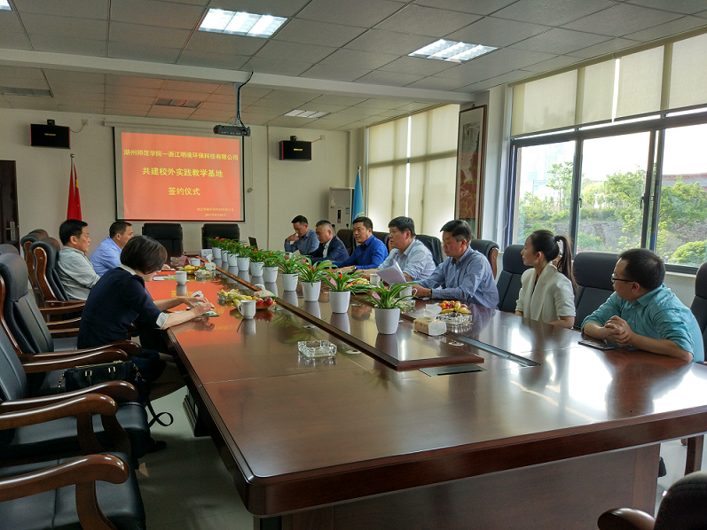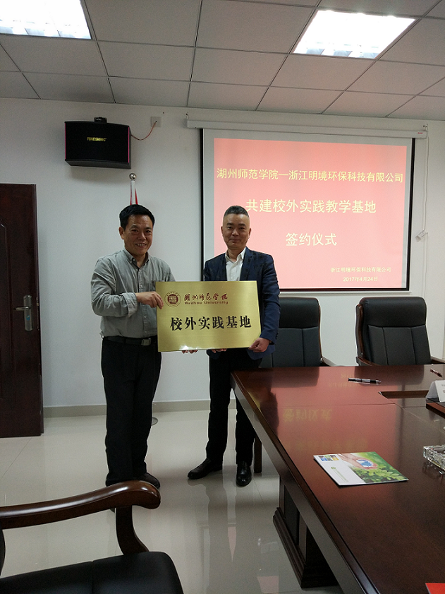 浙江明境環保科技有限公司與湖州師范學院,共建大學生校外教育基地,強化及細化校企合作的簽約