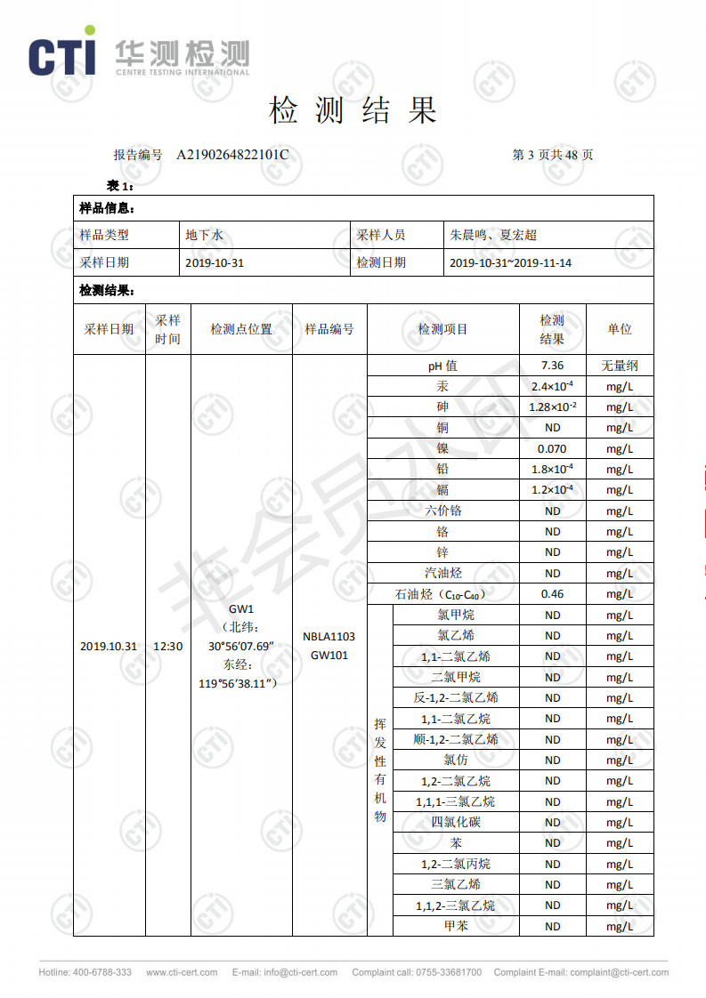 浙江明境環保科技有限公司2019年度土壤及地下水自行監測信息公開