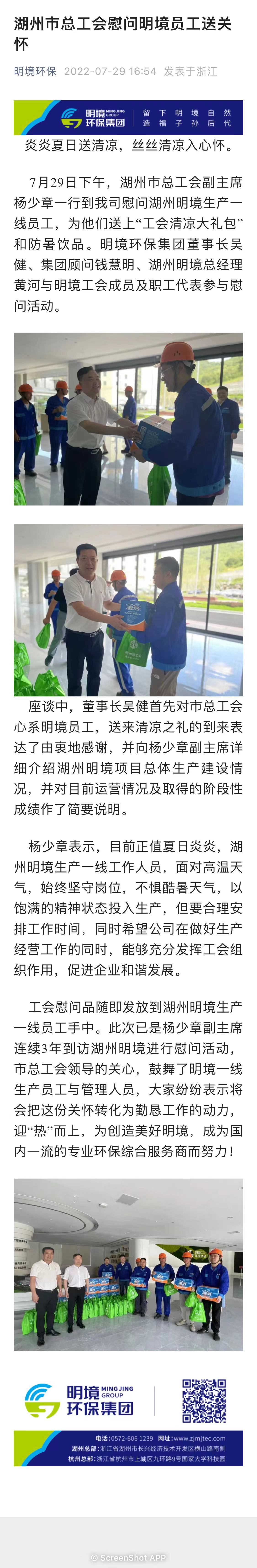湖州市總工會慰問明境員工送關懷